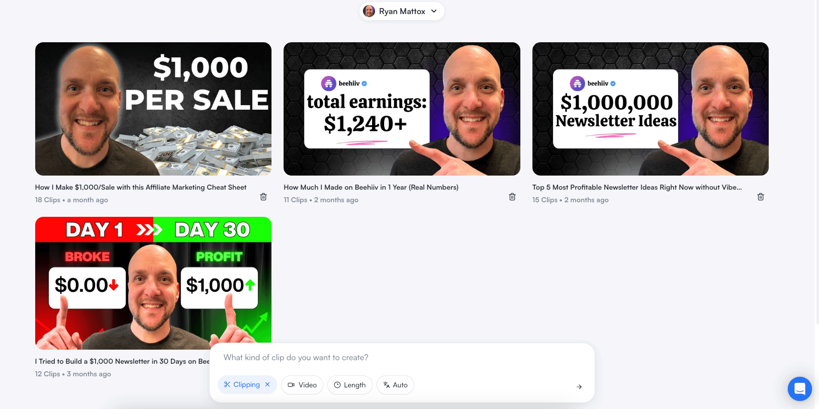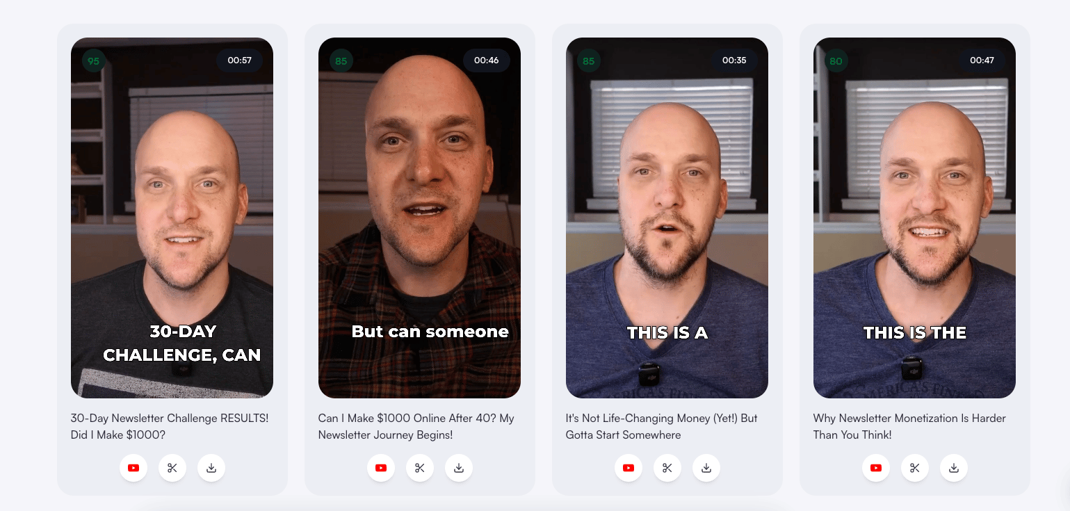 You basically provide the URL of a video and describe what type of video you want to create and it will generate multiple short for videos from your long form video