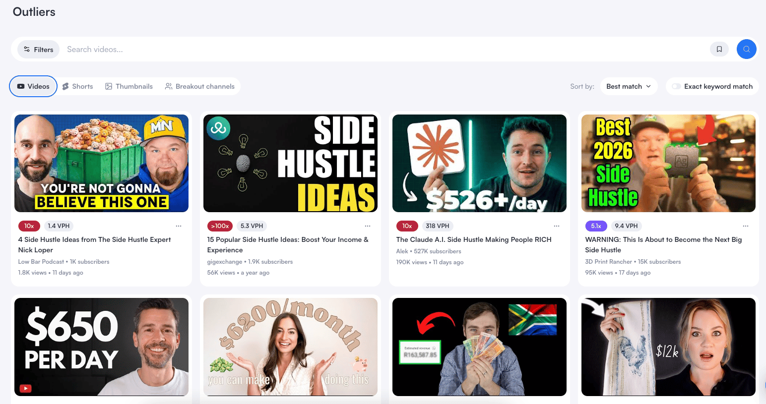 This allows you to see not just what videos are having success, but thumbnails and channels as well.